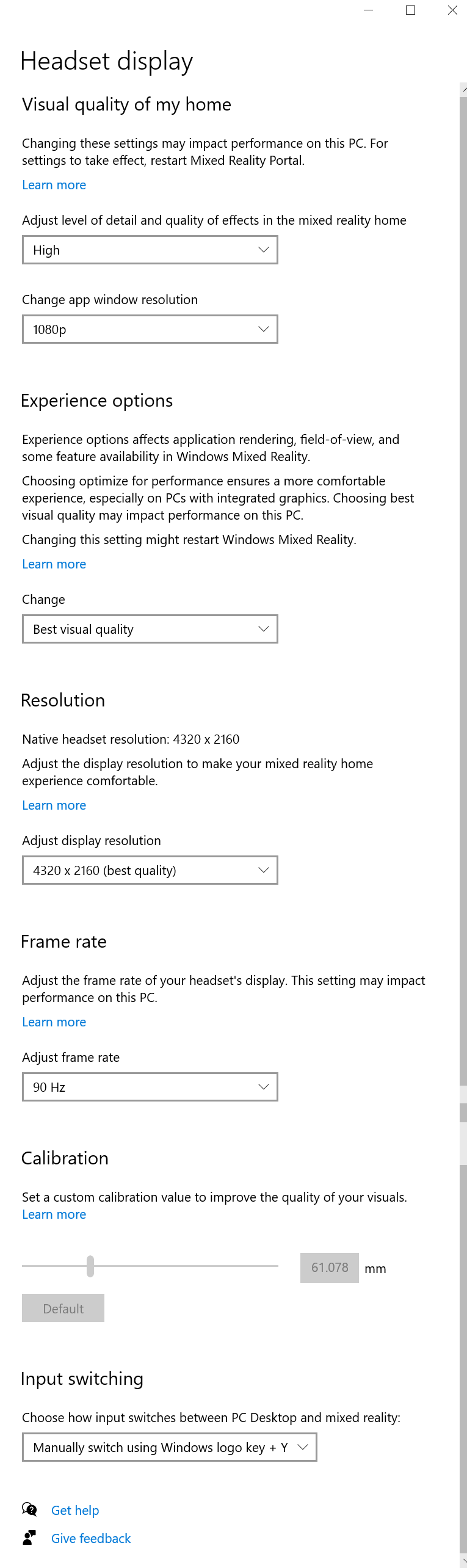 - Windows MR Settings (In the Windows MR Portal Settings Menus)