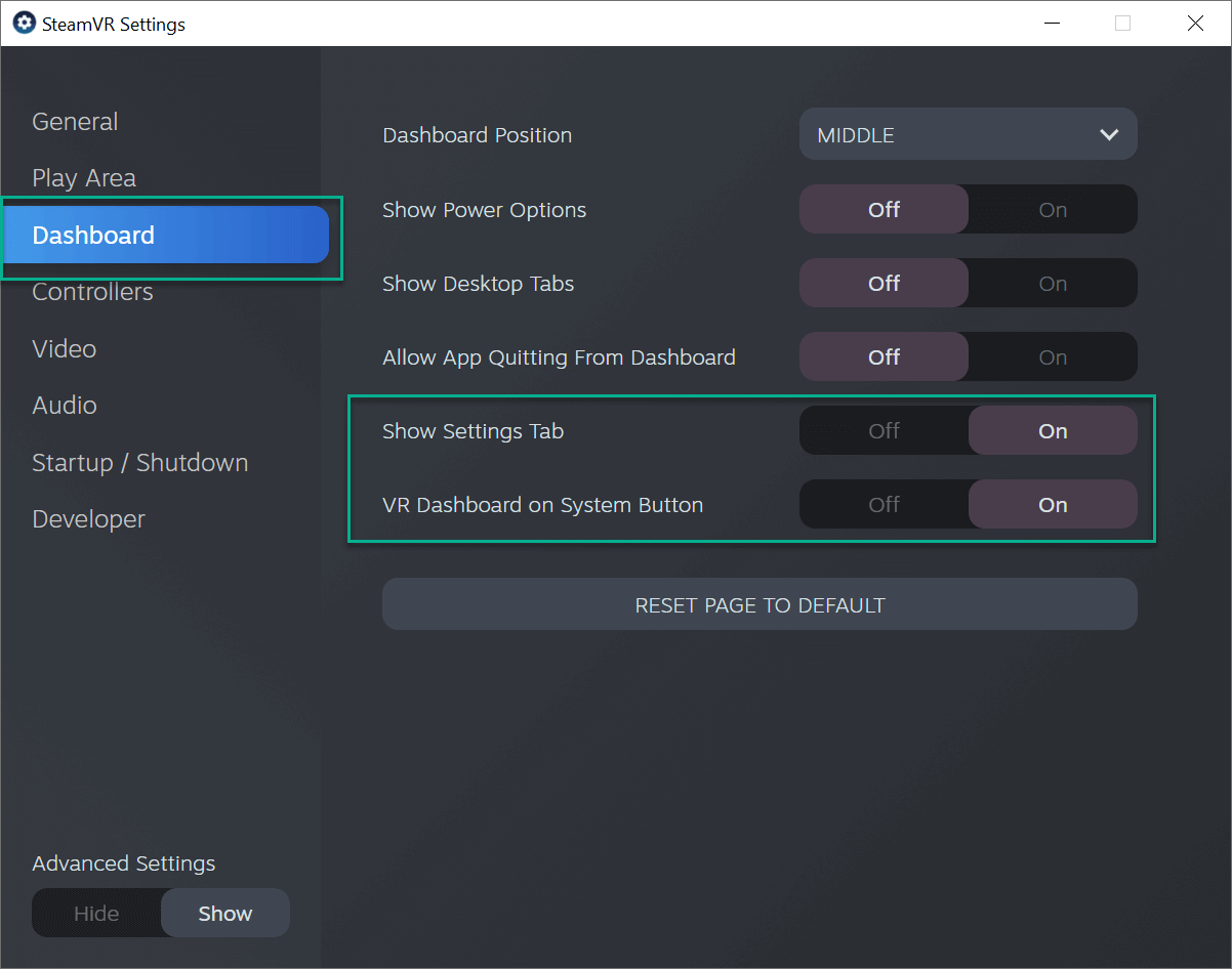 - After you complete the setup for Motion Vector in SteamVR, via the steps below, come back to SteamVR Settings: Dashboard and turn both of these OFF