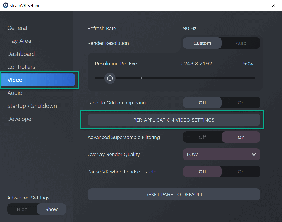 - If you select this option, new settings appear in the SteamVR/Settings/Graphics Tab for managing per-app Reprojection